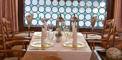 In unserem stilvoll eingerichtetem Restaurant mit den künstlerisch gestalteten Decken, bieten wir eine